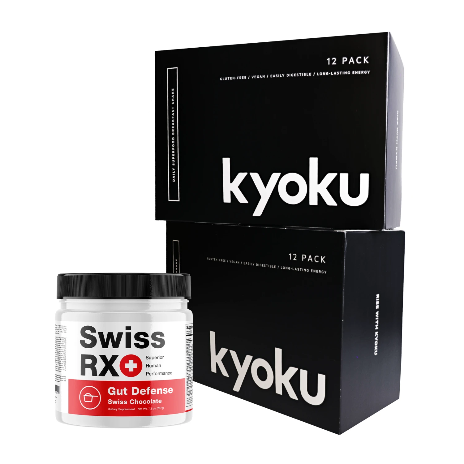 Mix 1 scoop of SwissRX Gut Defense (6.4 grams) and one packet of Kyoku in 16 ounces of a Plant-Based Milk of your choice to the desired thickness, once daily or as recommended by your health care professional. Best when blended.