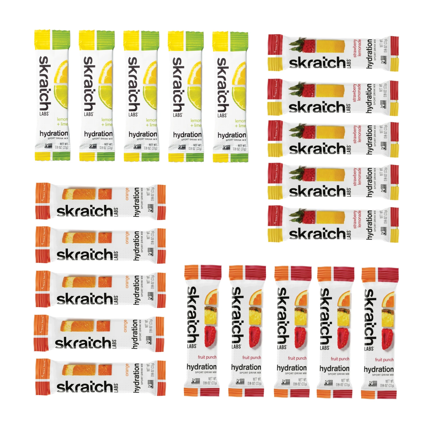 20 Skratch Labs Sports Hydration Drink Mix singles (5 of the following flavors)