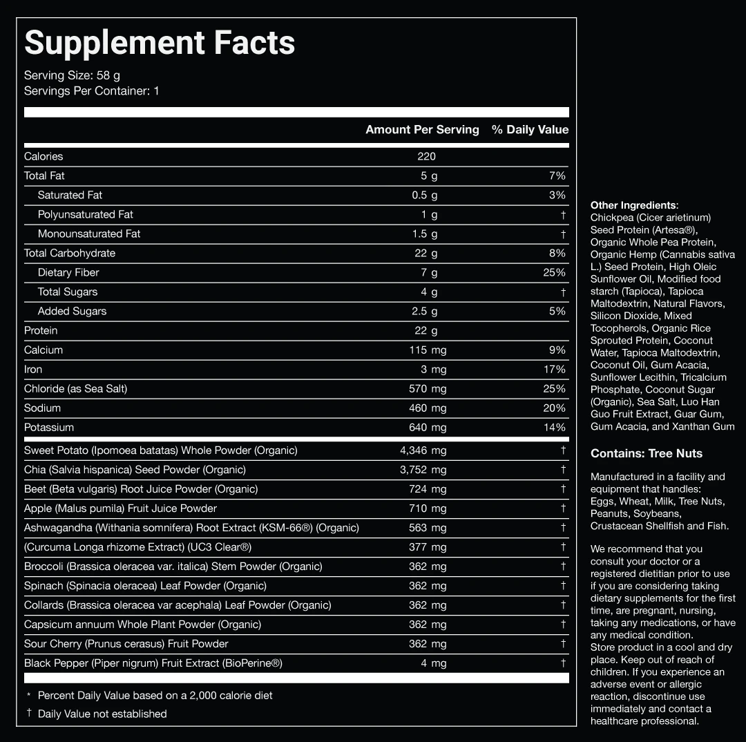 - Performance: Black Pepper, Beet Root, Ashwagandha