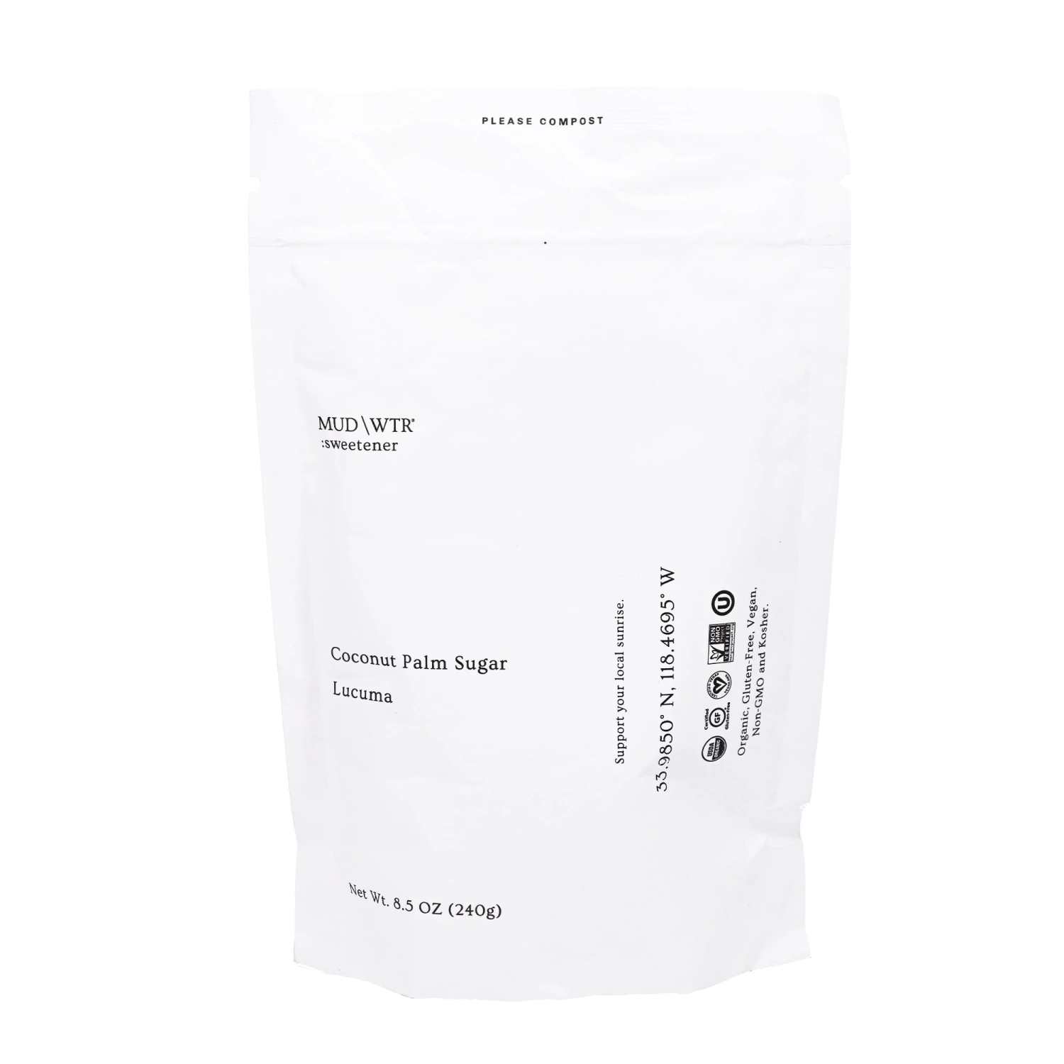 MUD/WTR’s :sweetener is made from organic coconut sugar and lucuma. Two parts coconut sugar is what makes this sweetener … well, sweet—and one part lucuma contributes to its sweetness and adds distinct yet subtle butterscotch and caramel undertones.Â