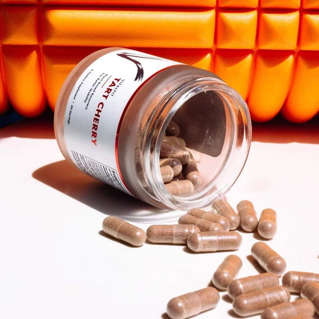 One capsule is equivalent to 17 oz. of tart cherry juice, minus all of the calories and sugar. There are 60 capsules for 60 servings – just one a day will do the trick. We like to take one capsule after our workouts to help with recovery, or before bed to help with sleep.Â